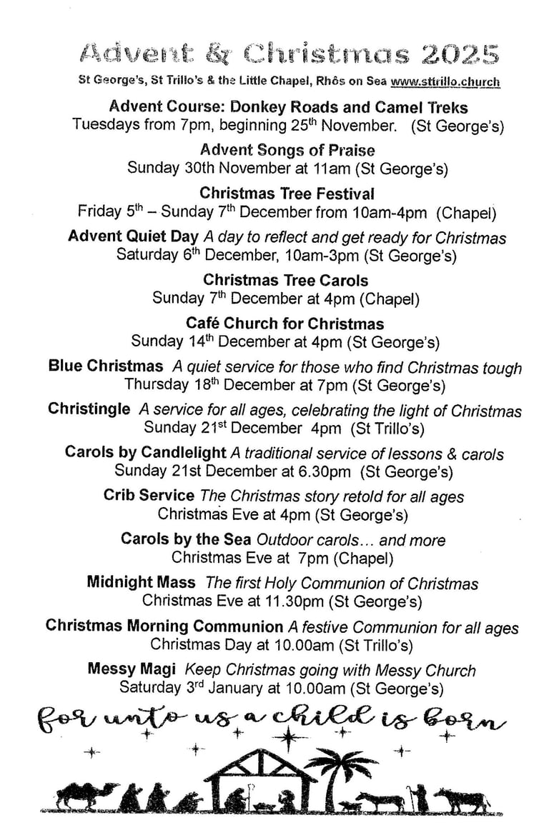 Join us in worship and community activities at St Trillo's and St George's churches.